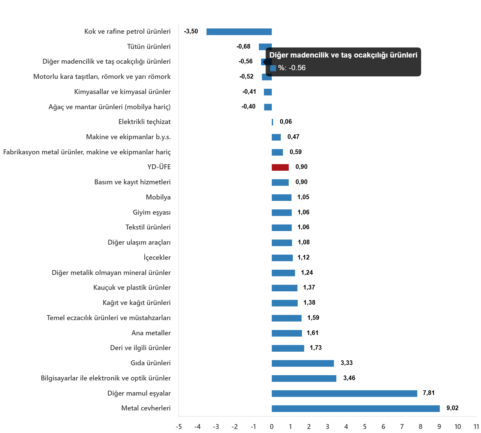 YD-ÜFE değişim oranları (%), Ekim 2025